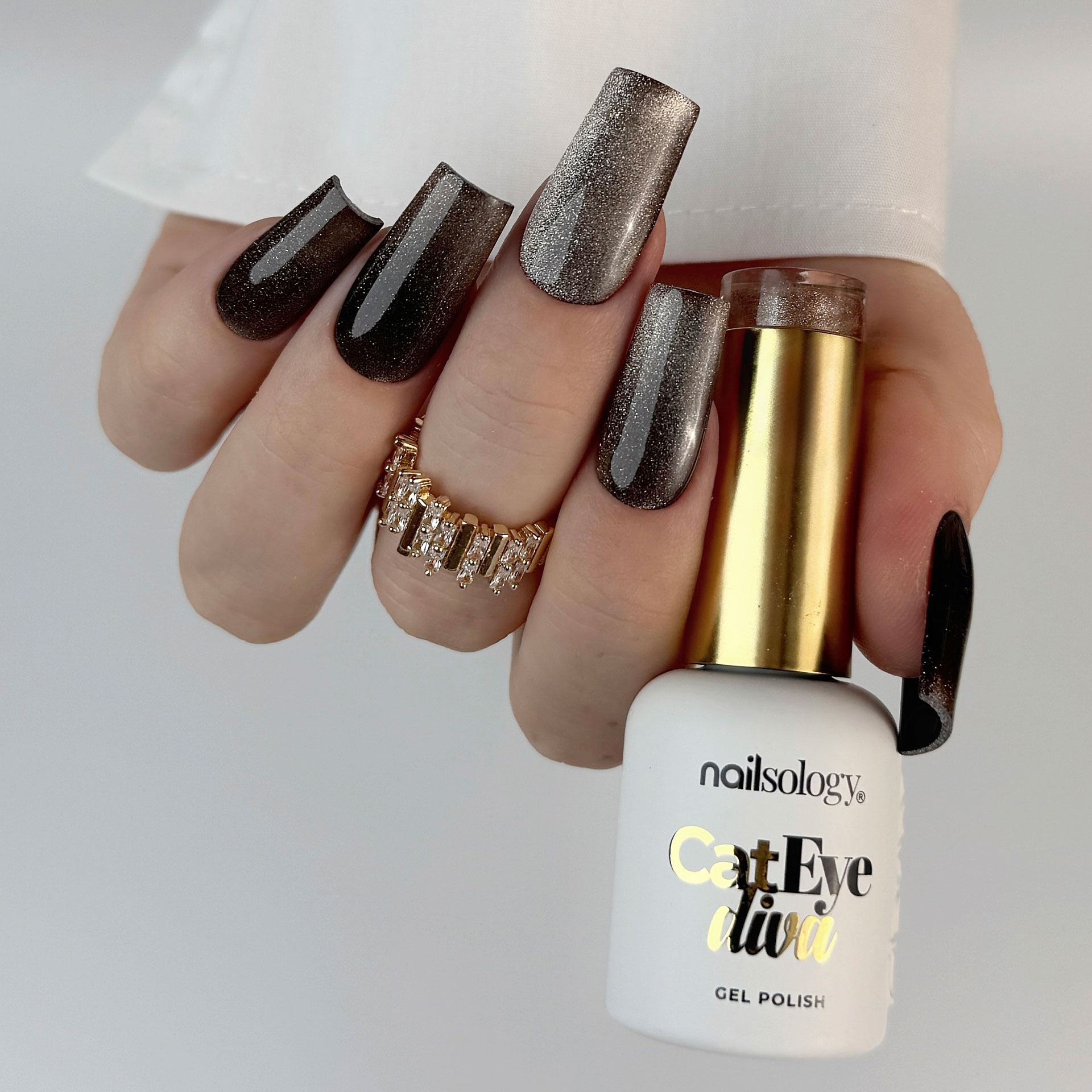 Nailsology Cat Eye Diva geellakk on toon, mis muudab iga käeliigutuse lummavaks valgusemänguks. 3D-efekt rõõmustab ka kõige nõudlikumaid kliente.